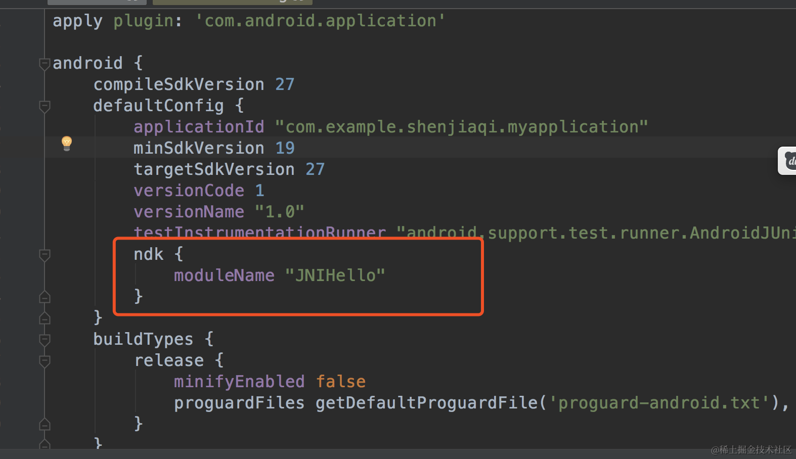 接下来我们在 build.gradle 中添加 ndk 配置: