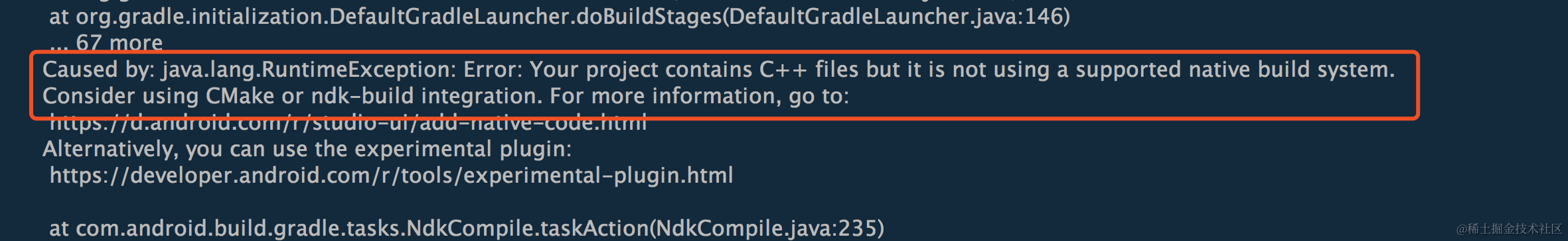 不要慌,说是让我们采用 CMake 或者 ndk-build 方式来捷成。这时候我们打开 build 目录,如下图: