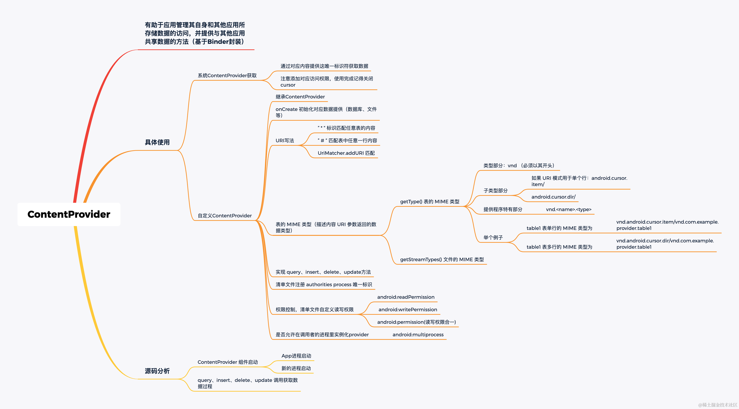 - 如何实现自己的ContentProvider? 继承 ContentProvider,实现对应的方法。在 manifest 中声明