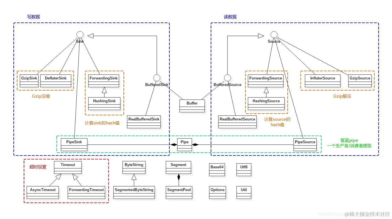 前面说了介绍了很多关键的类,下面看下 Okio 的整体设计:
