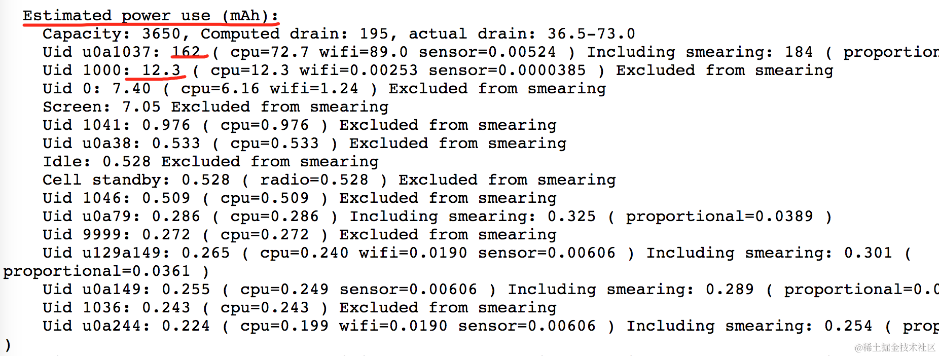 - 每个 APP 电量使用情况,通过 Uid 来标识APP