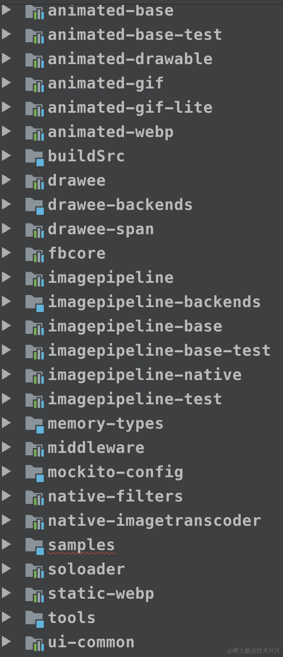 虽然 module 很多,但是并不像我们平时的项目里面一样,一个 module 包含很多代码,有的可能只有几个类,只是 fresco 整体分的比较细。