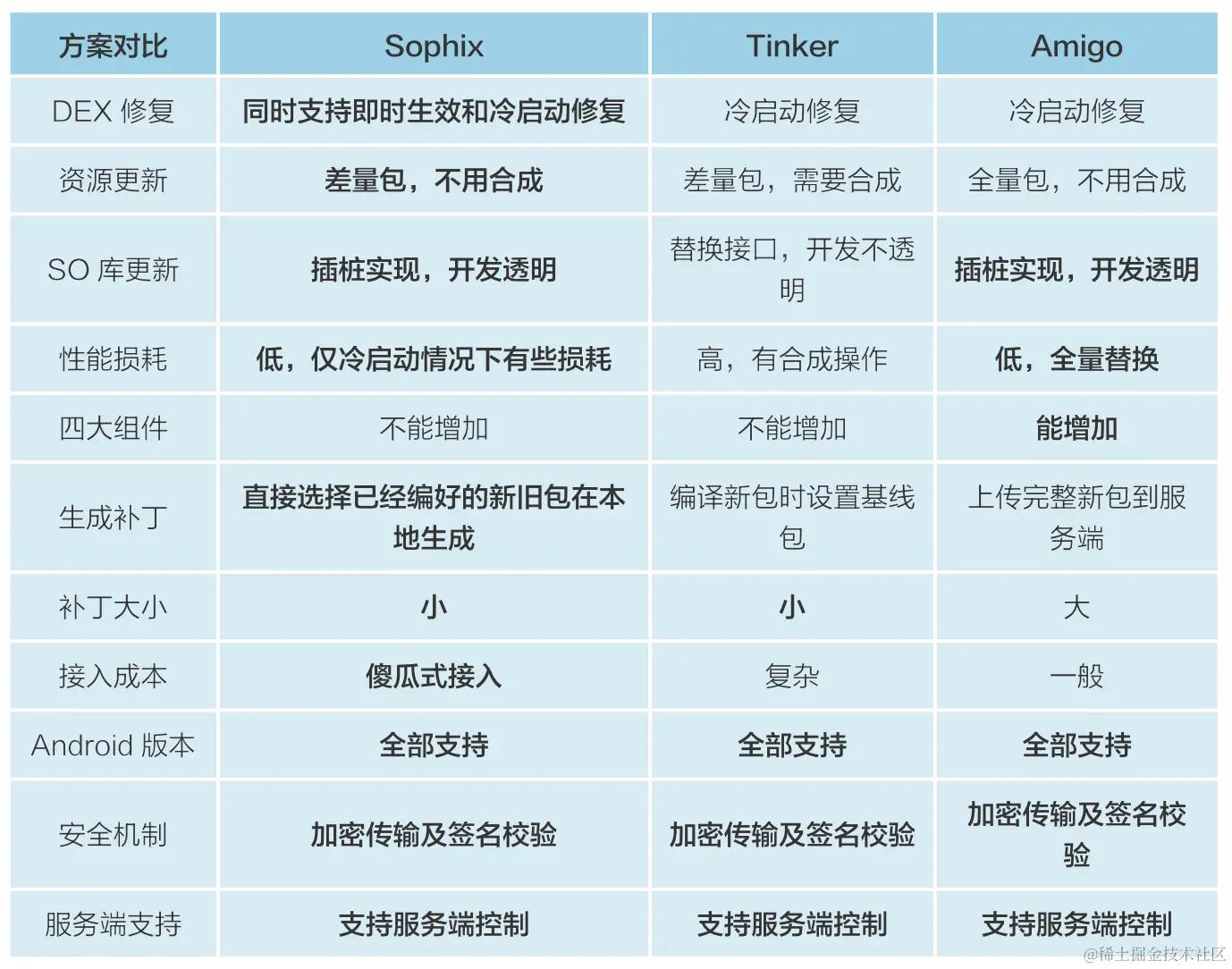 - Sophix:2017年6月推出Sophix,打破了各家纷争的局面,在代码修复,资源修复,so修复方面,都做到了业界领先