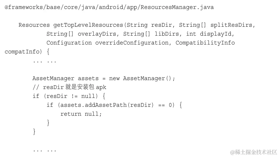 在走到 app 的第一行代码之前,系统就已经帮我们构造好一个已经添加了安装包资源的 AssetManager 了。