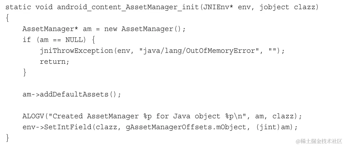 而现在,java 层的 AssetManager 已经成为了空壳。我们就可以调用它的 init 方法,对它重新进行初始化了!