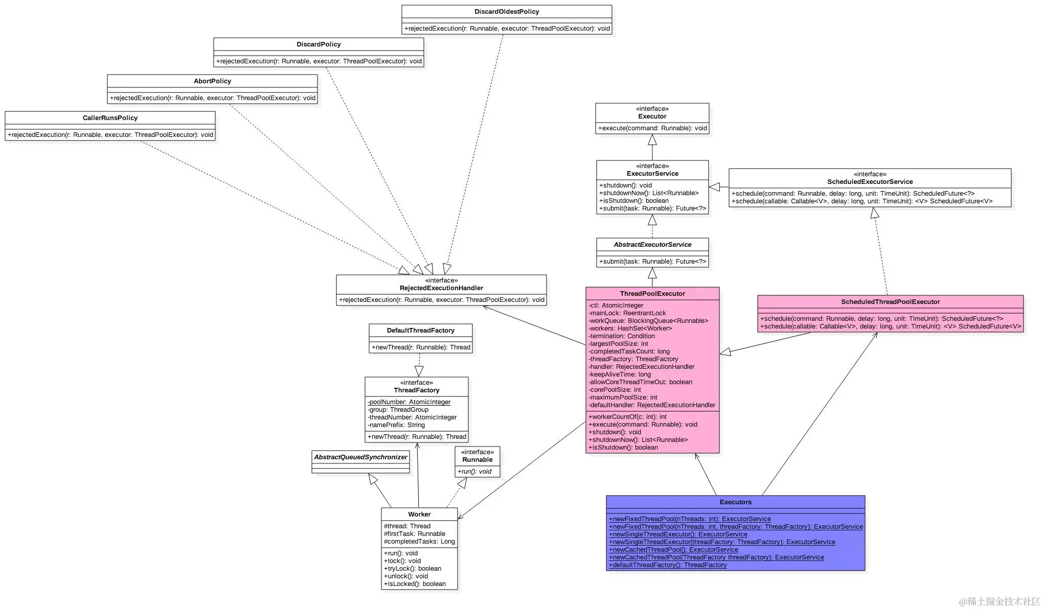 先看一下线程池的类图: