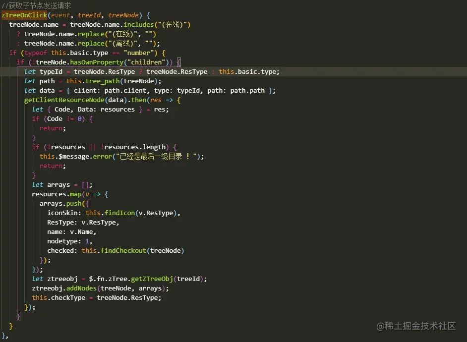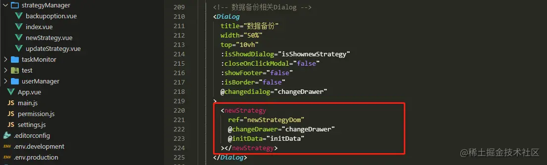 index.vue,子组件为newStrategy.vue,文件资源加载是通过接口返回后再挂载资源树上,最主要的方法是zTreeOnCheck()和zTreeOnClick()。