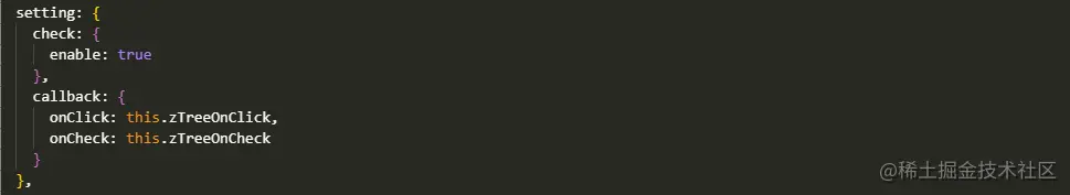 main.js中引入 css 和 js。import "@/plugins/ztree/js/jquery-3.2.1.min"; import "@/plugins/ztree/js/jquery.ztree.core.js"; import "@/plugins/ztree/js/jquery.ztree.excheck"; import "@/plugins/ztree/css/zTreeStyle/zTreeStyle.css"; -