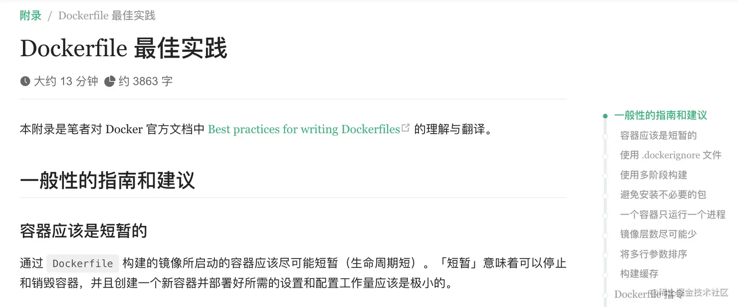 为了帮大家更好地实践 Docker,作者还整理了 Docker 使用的常见问题、热门 Docker 镜像、Docker 命令等,并且给出了 Dockerfile 的最佳实践。因为小书是开源免费的,得到了很多开发者的贡献,所以最佳实践章节的质量很高,推荐阅读!