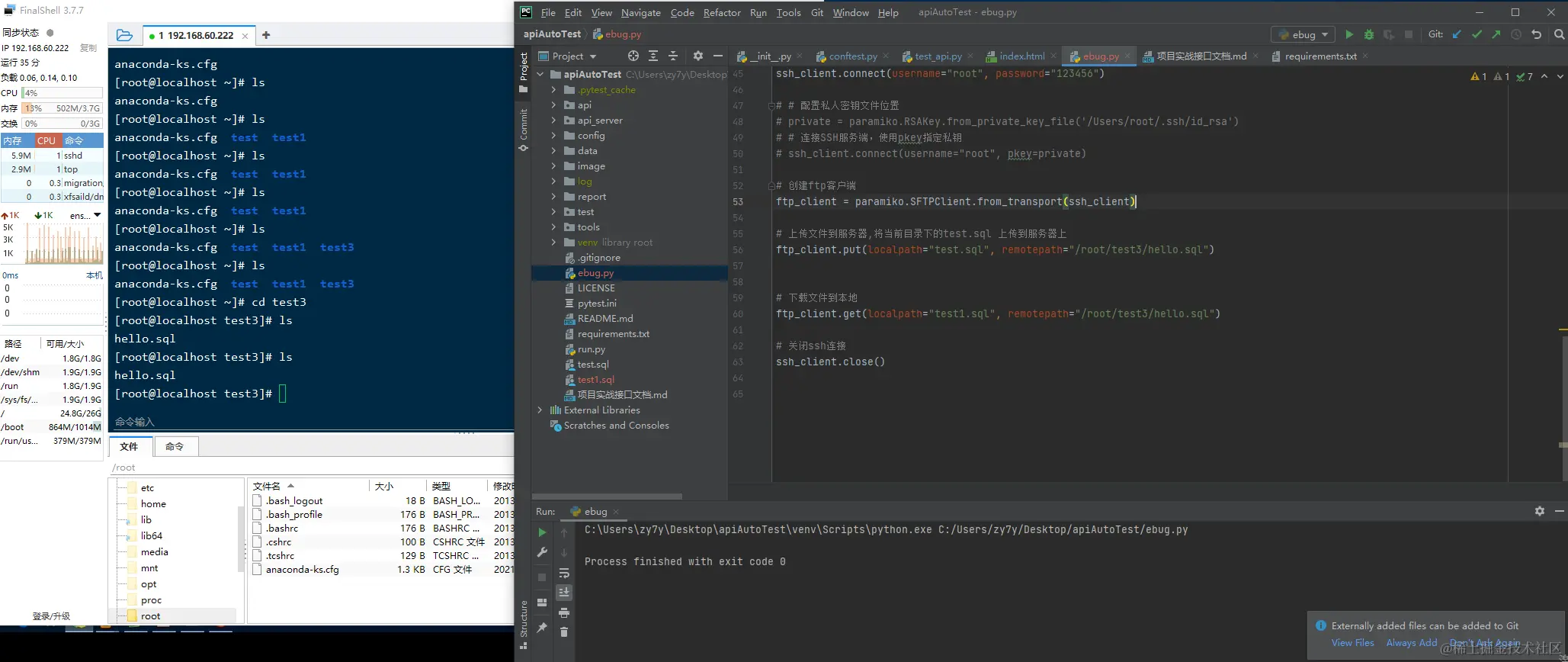 ftp_client.get(localpath="test1.sql", remotepath="/root/test3/hello.sql")