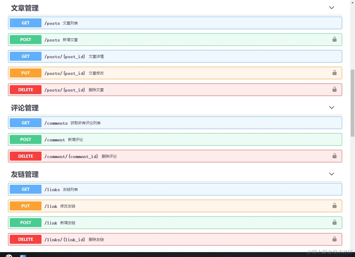 学习FastAPI中把官方文档过了一遍,看了些大佬的文章,也借鉴(抄袭)了部分代码,写了一套个人博客的API,目前还比较简陋,统计的API基本没有,而且目前基本都停留在单表查询,所以含量不高,接着往下看吧