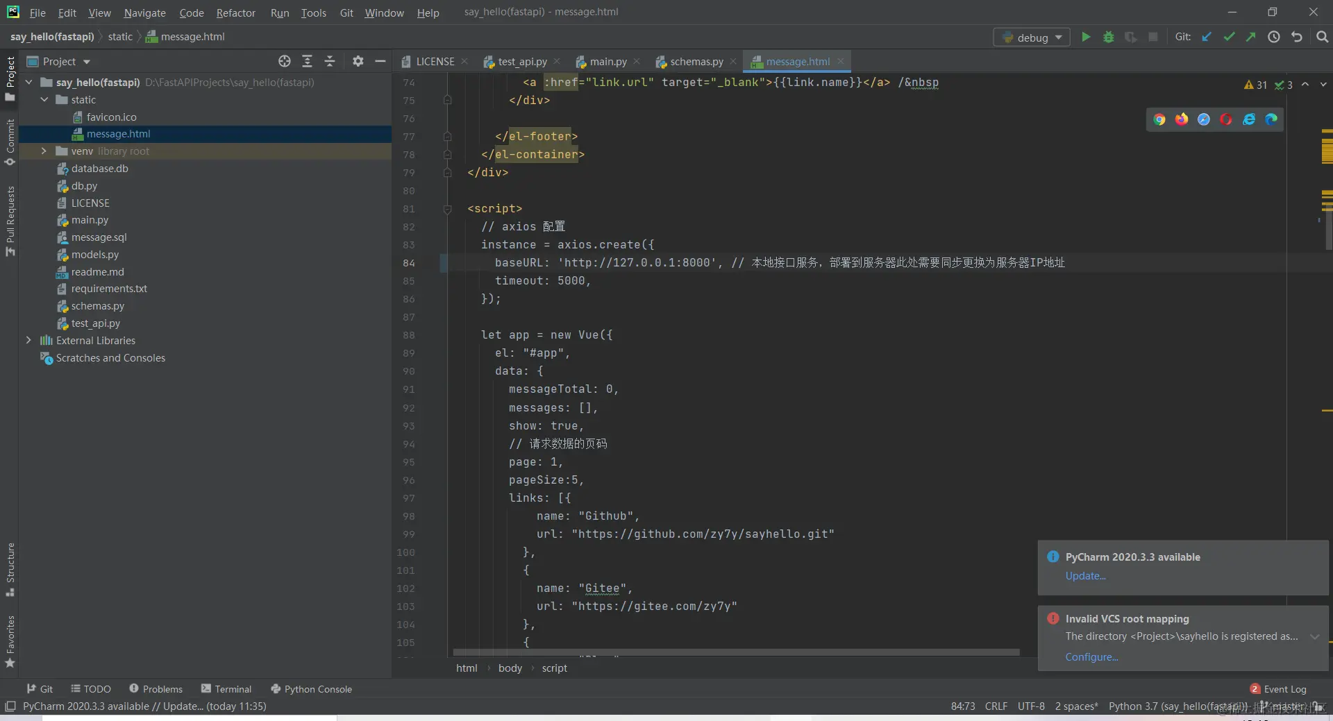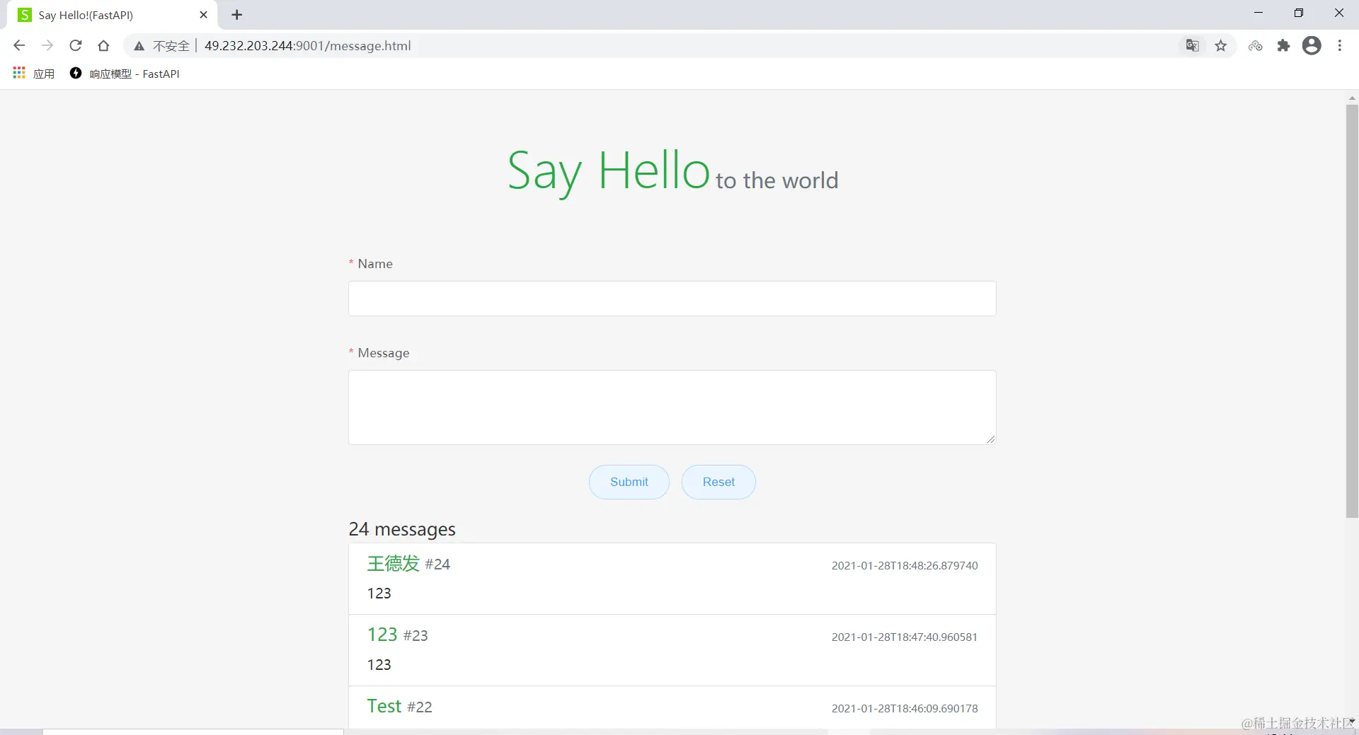 昨天发了一个SayHello FastAPI版本,今天部署上自己的服务器了