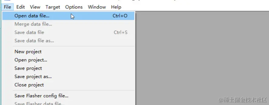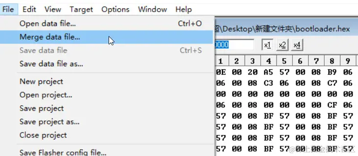 点击File -> Open data file,打开bootloader程序。