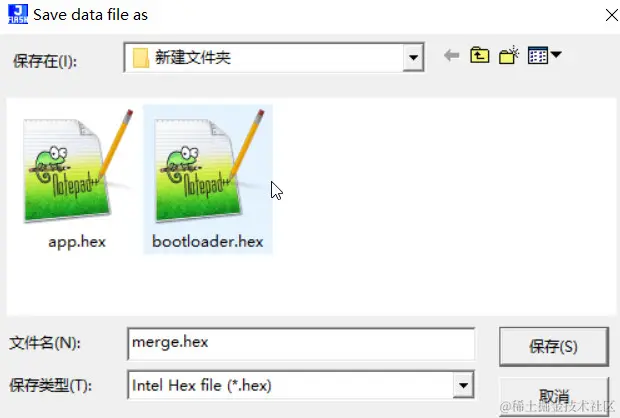 - 要合并的文件2:app.hex,起始地址:0x20001000,如果是Bin文件要先确定起始地址。