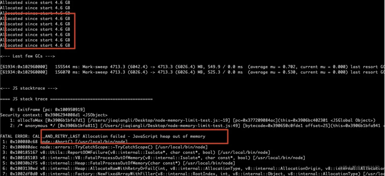 用 node --max-old-space-size=6000 来运行这段代码,得到如下结果: