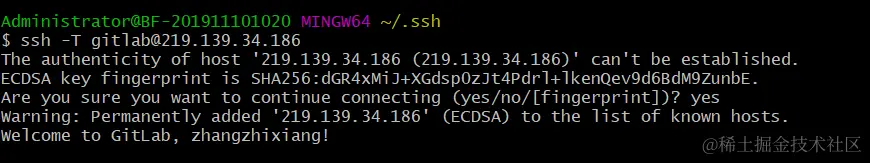 如果要与Gitlab建立连接,执行以下命令(@后面的地址是你的Gitlab的IP):