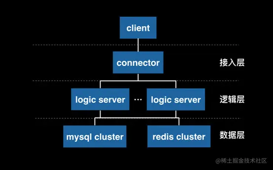至此,我们就会发现,一个典型的三层结构出现了:接入、逻辑、存储。然而,这种三层结果,并不就能包医百病。例如,当我们需要让用户在线互动(网游就是典型) ,那么分割在不同逻辑服务器上的在线状态数据,是无法知道对方的,这样我们就需要专门做一个类似互动服务器的专门系统,让用户登录的时候,也同时记录一份数据到它那里,表明某个用户登录在某个服务器上,而所有的互动操作,要先经过这个互动服务器,才能正确的把消息转发到目标用户的服务器上。