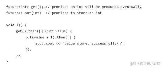 而另外一种改善回调函数的写法,往往叫做Future/Promise模型。这种写法的基本思路,就是“一次性把所有回调写到一起”。这是一个非常实用的编程模型,它没有让你去彻底干掉回调,而是让你可以把回调从分散各处,集中到一个地方。在同一段代码中,你可以清晰的看到各个异步的步骤是如何串接、或者并行执行的。