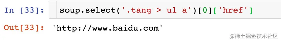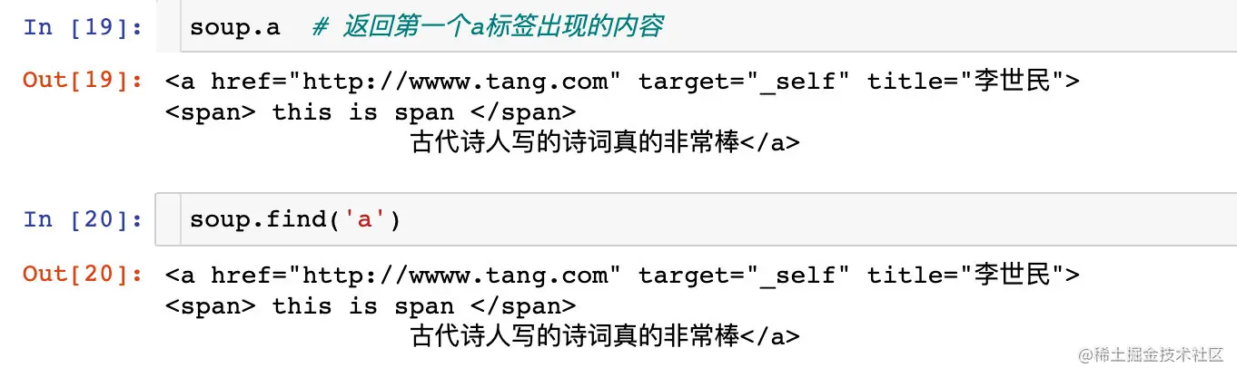soup.tagName和soup.find('tagName')的效果也是相同的: