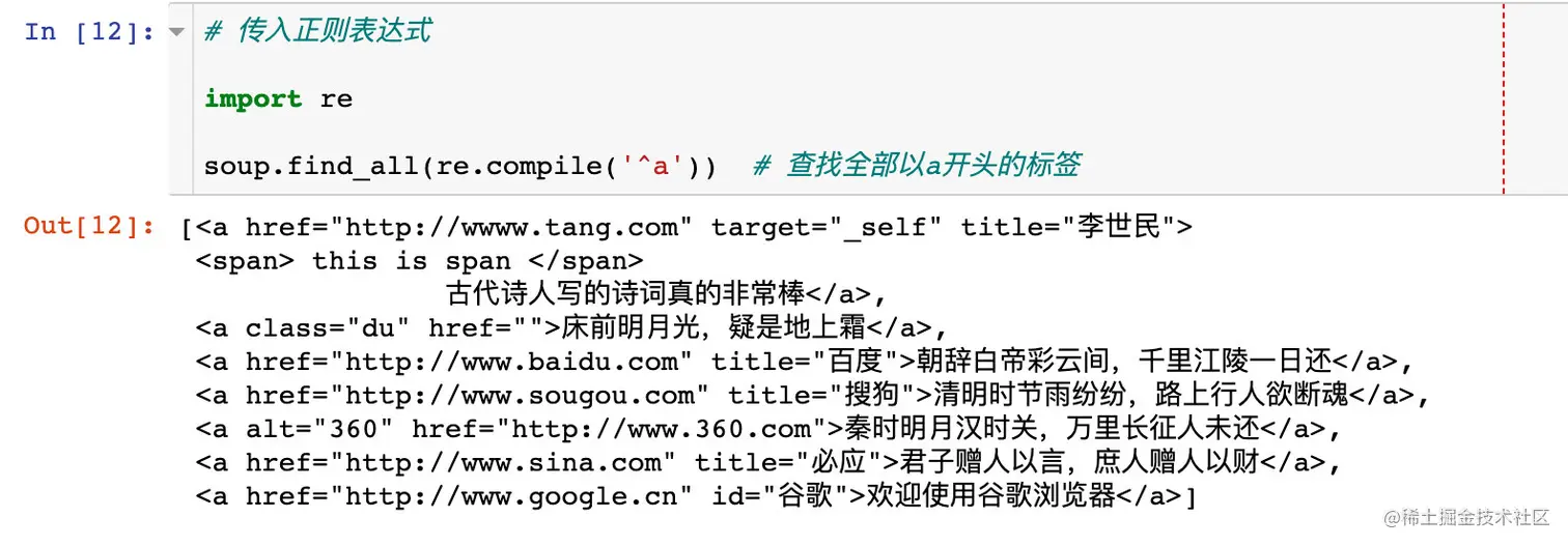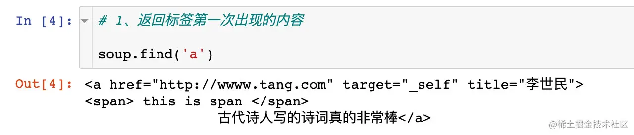 soup.TagName返回的是该标签第一次出现的内容,以a标签为例: