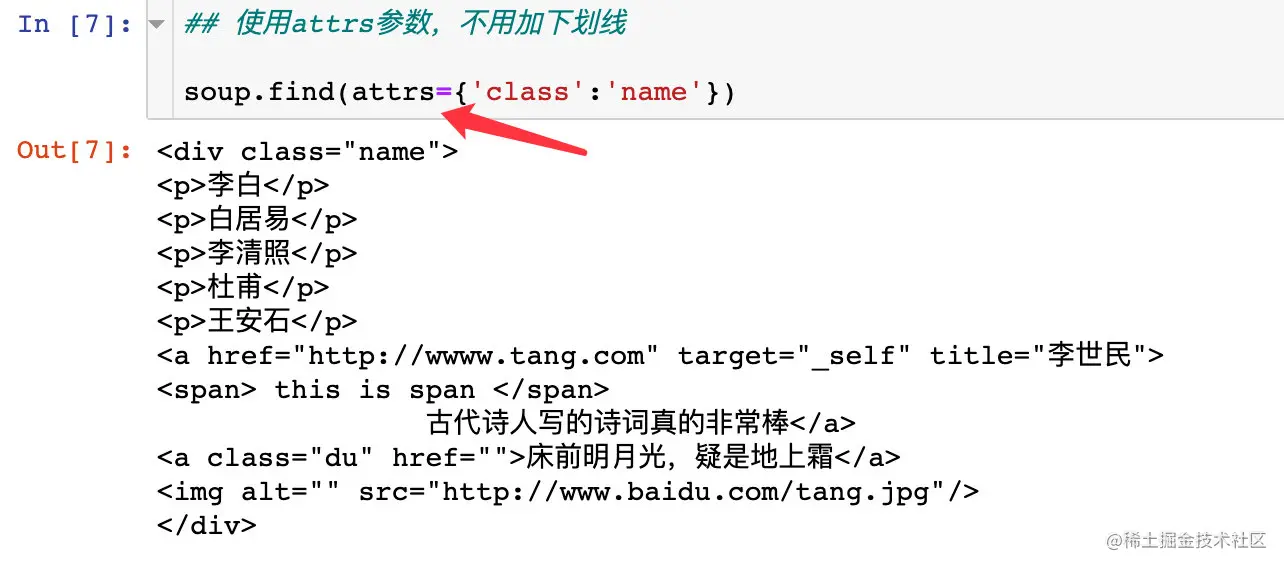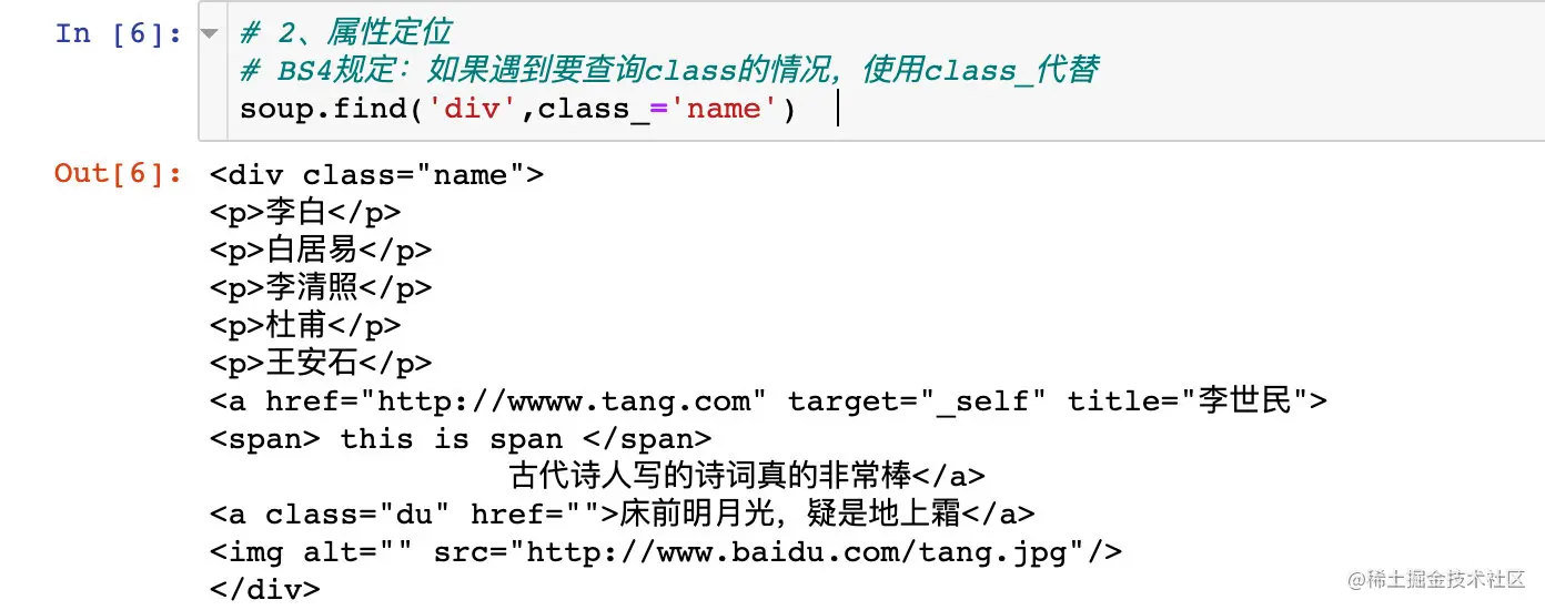 在BS4中规定,如果遇到要查询class情况,需要使用class_来代替:
