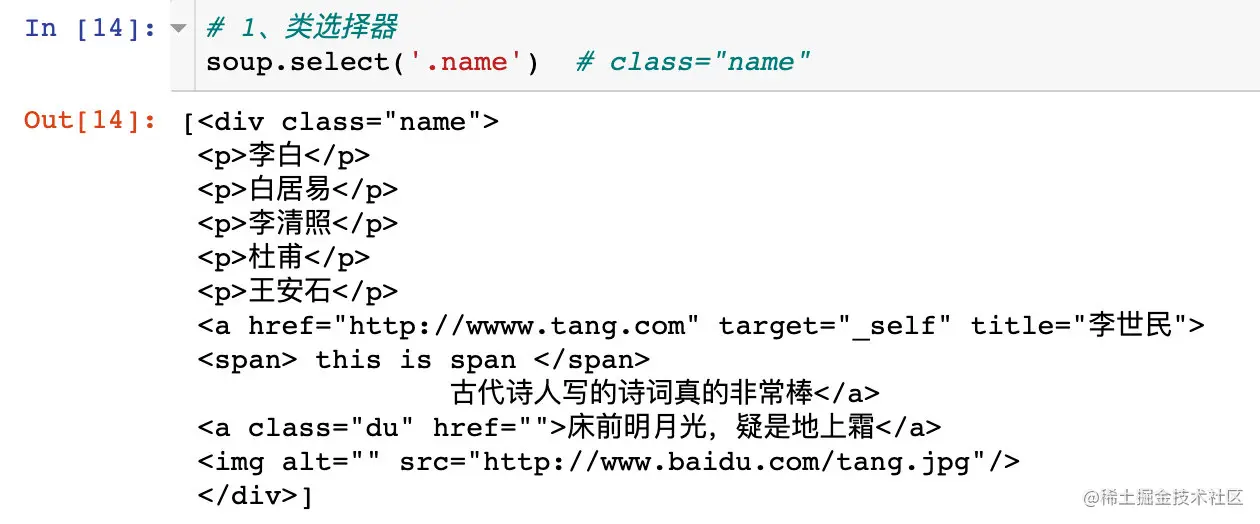 4、选择器和find_all()可以达到相同的效果: