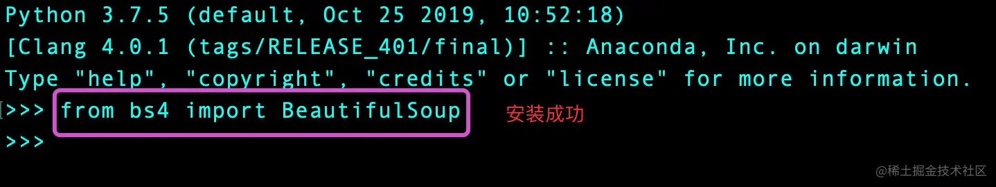 上面安装库最后的4是不能省略的,因为还有另一个库叫作beautifulsoup,但是这个库已经停止开发了。