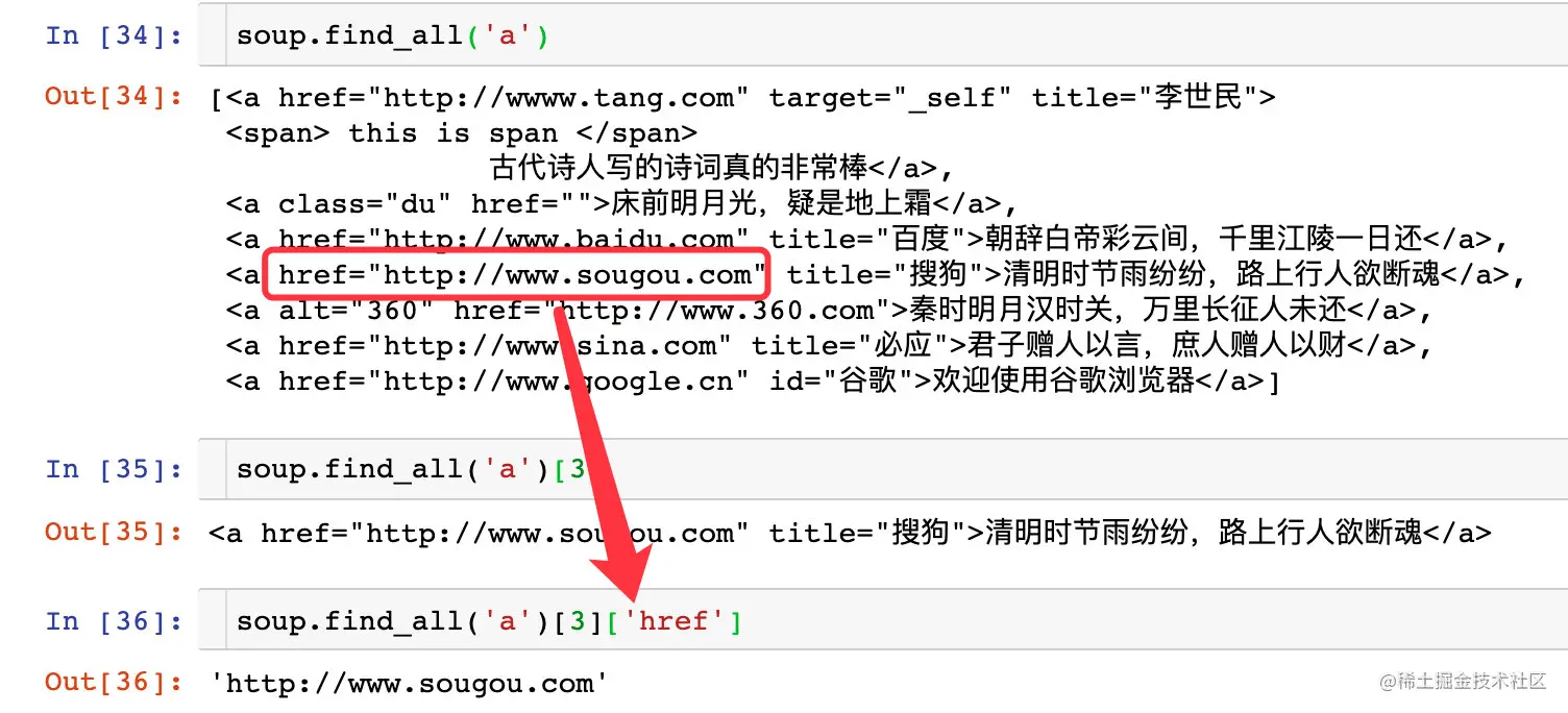 所有的数据解析都是基于soup对象的,下面开始介绍各种解析数据方法:
