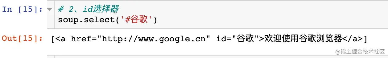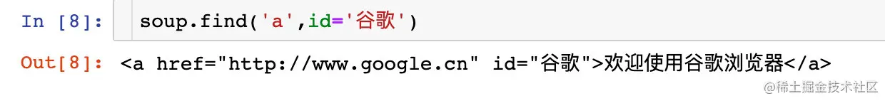 比如我们想查找a标签中id为“谷歌”的数据信息: