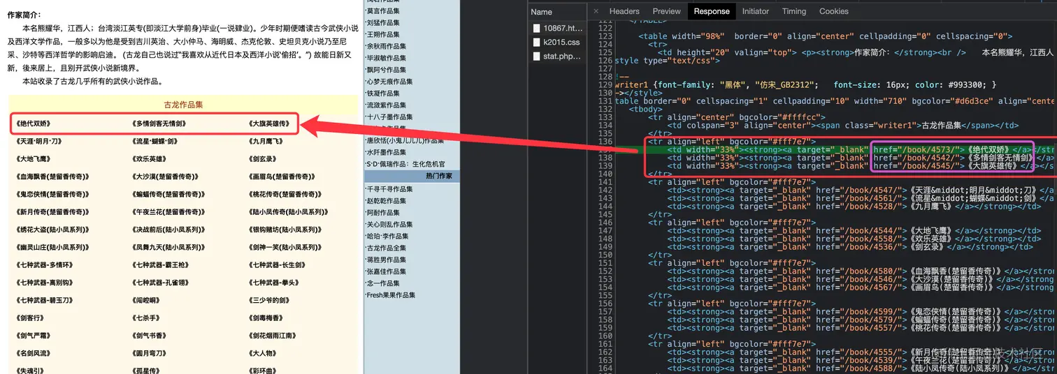 下面介绍的是通过BeautifulSoup解析方法来获取某个小说网站上古龙小说名称和对应的URL地址。
