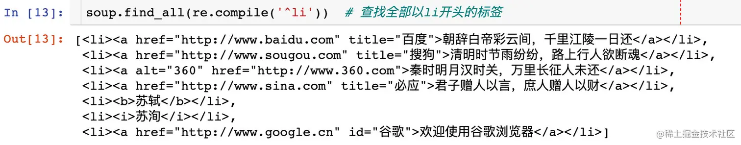 查看以li标签开头的全部内容: