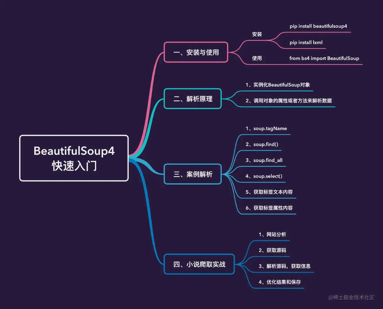 本文从BeautifulSoup4库的安装、原理以及案例解析,到最后结合一个实际的爬虫实现介绍了一个数据解析库的使用,文中介绍的内容只是该库的部分内容,方便使用者快速入门,希望对读者有所帮助。