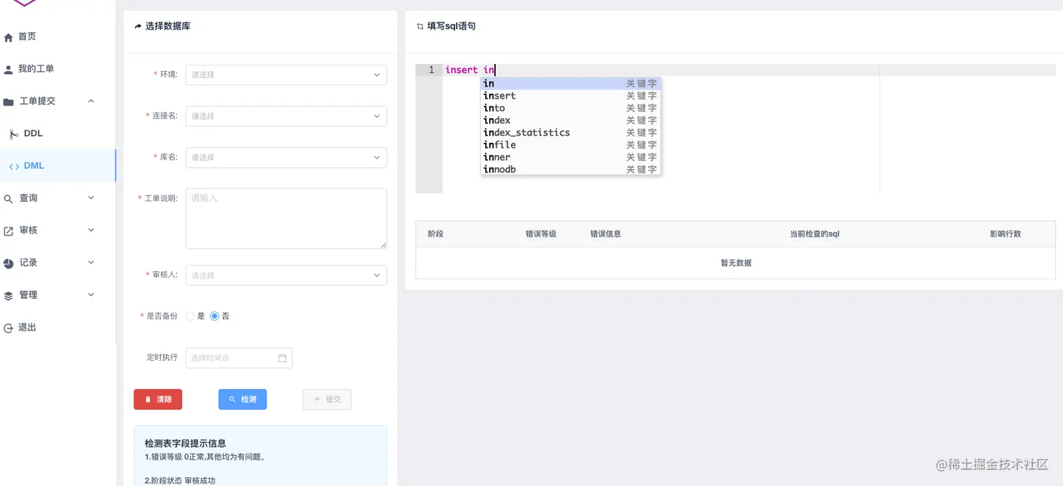 - 自动化SQL语句审核,可对SQL进行自动检测并执行
