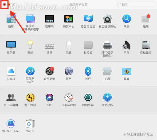 点击软件窗口左上角的关闭按钮(最左侧的红色按钮),其实只是关闭了软件窗口,并不会真正的退出关闭应用。