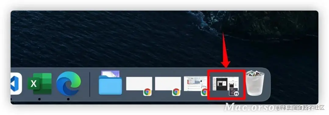 这个最小化显示的窗口会缩放到屏幕底部 Dock 栏的最右侧,当你需要再次用到这个软件,点击缩略图就会打开软件窗口。