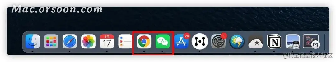 关闭了软件窗口,软件还是处于后台运行的,macOS 也设计了一个小特性:如果 Dock 栏的软件图标下方有一个黑色的小圆点,说明软件正处于运行状态,要么是前台运行,要么是后台运行。
