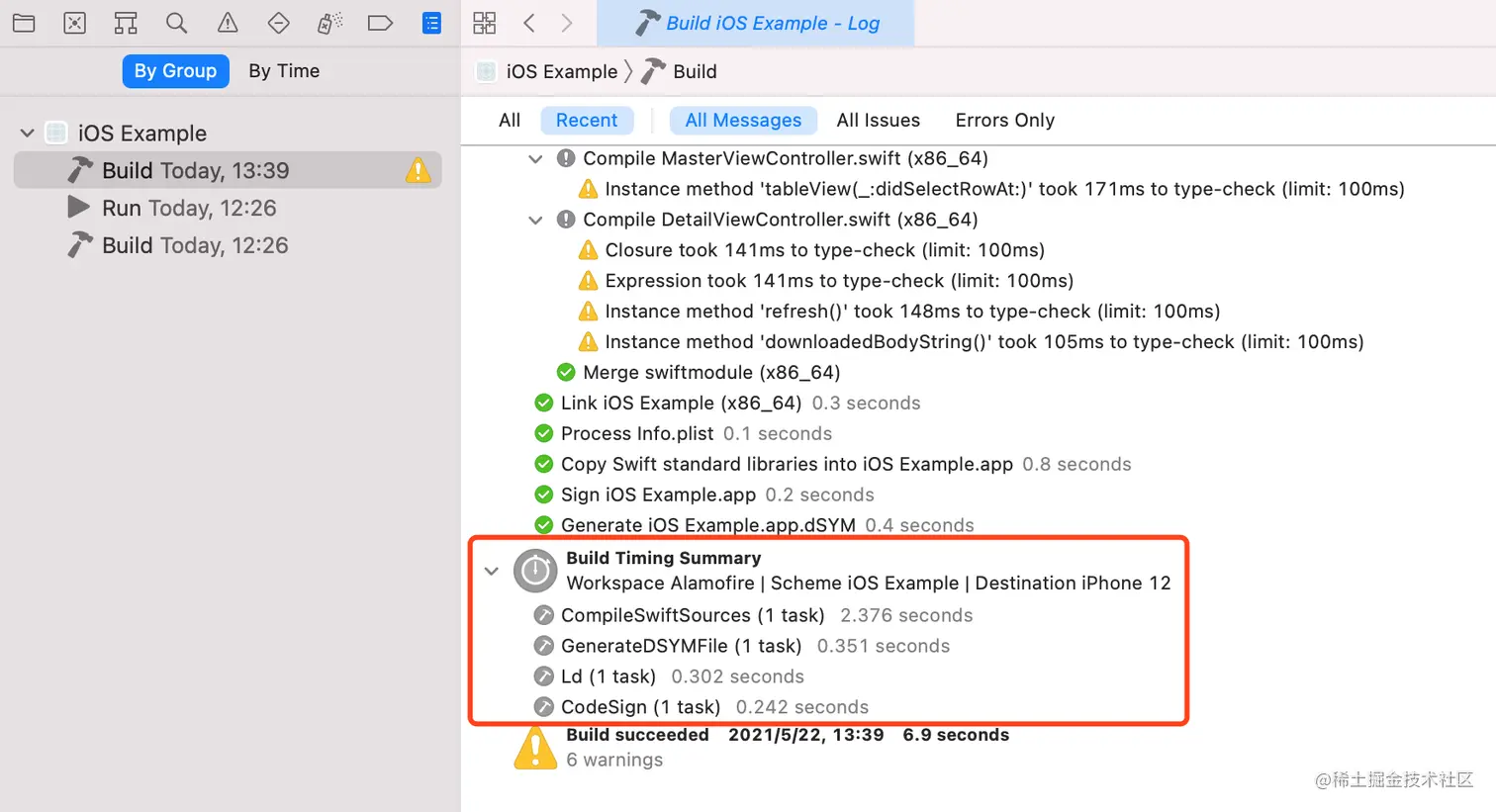 其还对应一个 xcodebuild 参数-showBuildTimingSummary,使用该参数,编译日志里也会带上个阶段耗时的统计分析。