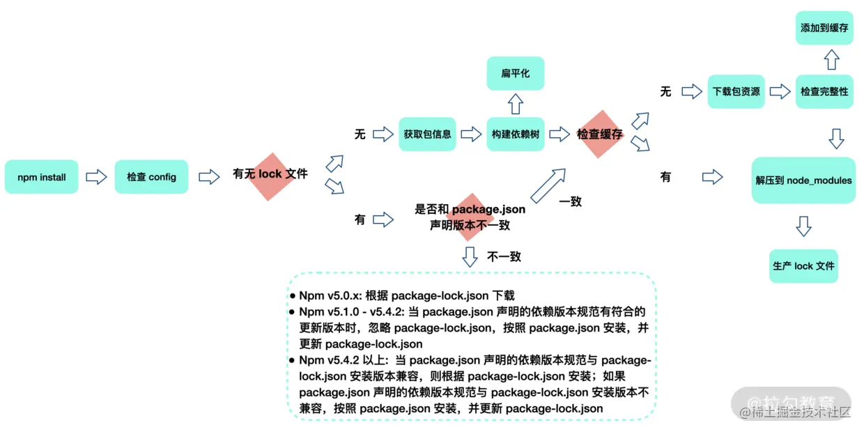 重新安装可能会改变依赖版本, 是有风险的 因为删除lock文件以后, 模块的安装顺序可能影响 node_modules 内的文件结构 insatll命令执行的时候,获取依赖包的顺序不一样,可能导致扁平化机制生成的依赖树不一样