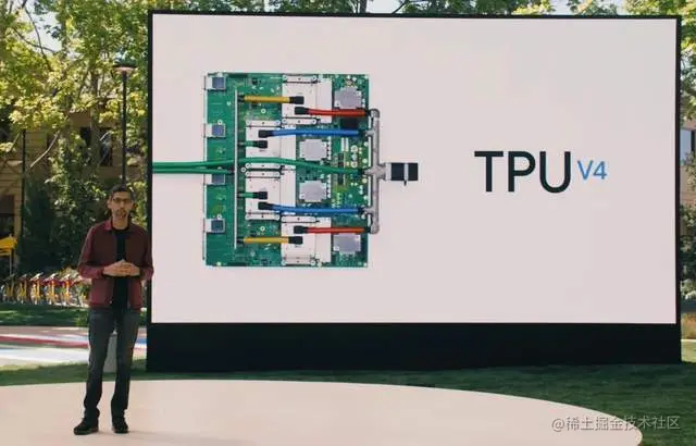 谷歌做了很多机器学习的东西——很多很多。因此,他们一直致力于制造更好、更高效的计算硬件以处理这些人工智能系统带来的大量处理负荷。TPUv4是最新的AI芯片——速度是老款的两倍,不久将被打包成 4096 个 pods。