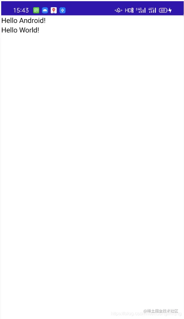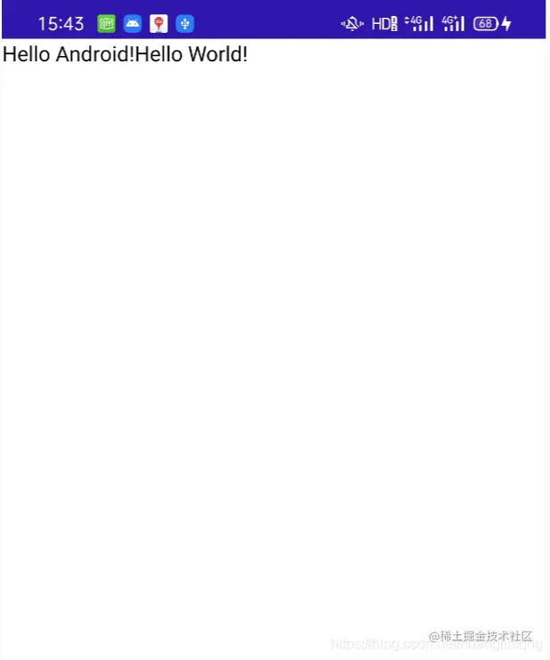 Greeting这个函数中,接收一个string类型的name参数,并显示在Text上,这里要注意的是 这里的Text组件和原生的TextView并没有关系,同样的方法我们自定来定义一个HelloWorld,代码如下所示: