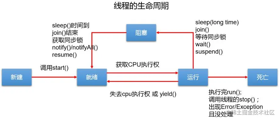 Thread对象的run()方法来完成操作的,经常把run()方法的主体称为线程体 - 通过该