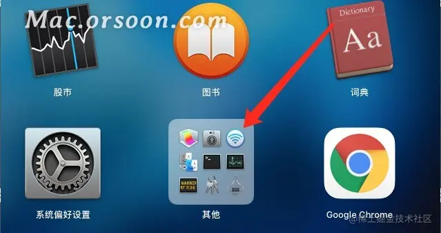 1.点按程序坞中的启动台图标,打开"启动台"。
