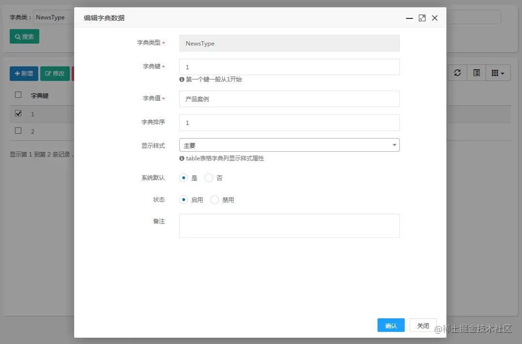 - 通用字典:系统里动态改变的数据,像文章类型,用字典进行维护,不变的数据,可以用枚举