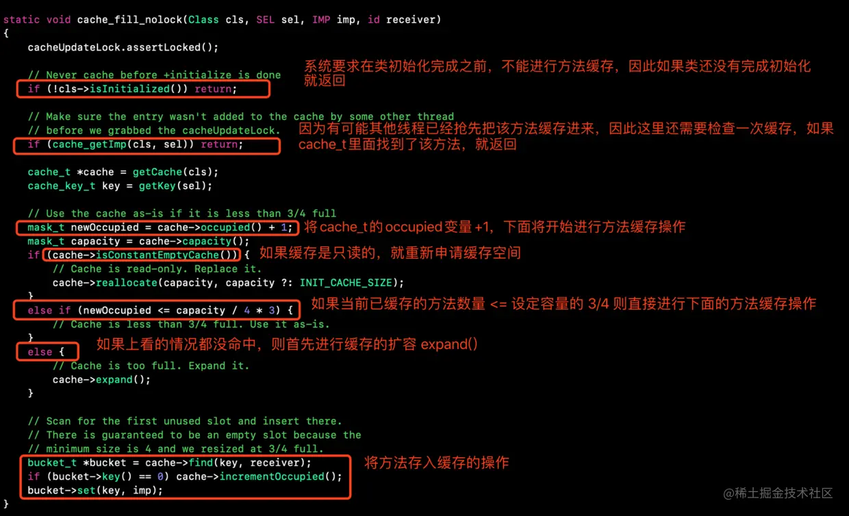static void cache_fill_nolock(Class cls, SEL sel, IMP imp, id receiver)