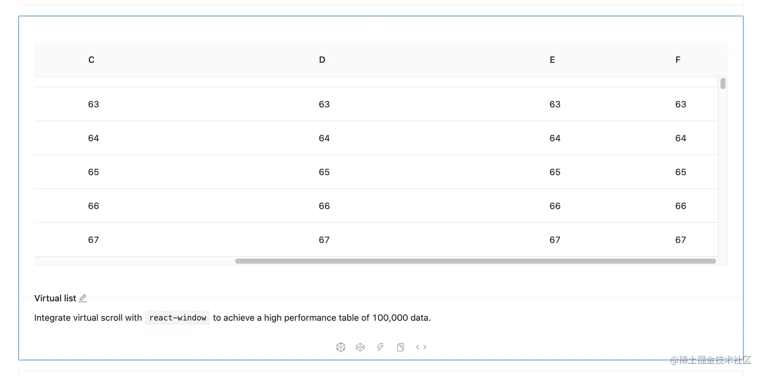 所谓授人以鱼不如授人以渔,希望文中探讨的内容,或多或少在提升表格性能及表格虚拟化方向,能给与读者一些启发,为字节系产品的用户带来更快更好的体验。