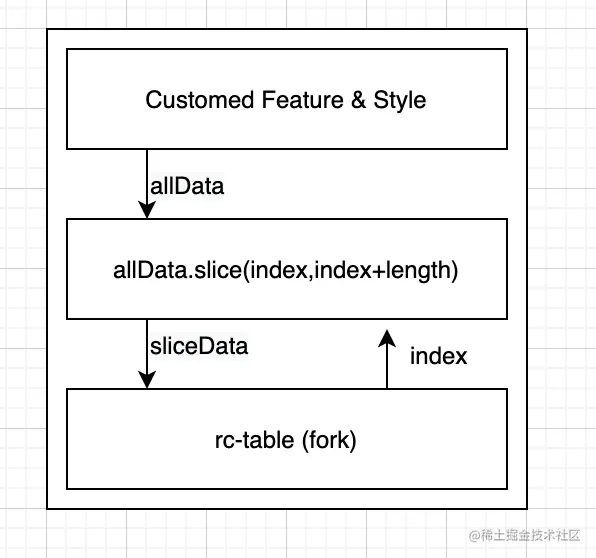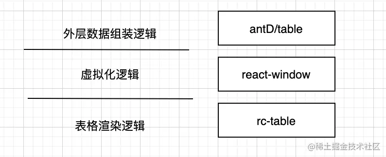 至此,我们可以了解到,AntD架构本身其实已经对表格逻辑进行了一定程度的划分,与data数据的顺序及内容无关的逻辑,已经被单独抽象到了rc-table这个库中。大致上我们可以理解为下图:
