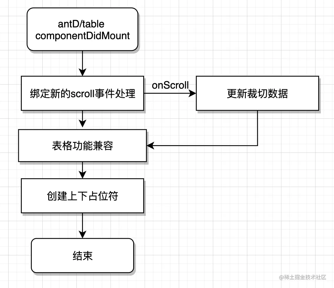 当业务重度依赖AntD的各个功能,不能直接移除AntD。我们只能保留整体框架,找到切入点做部分改造。所以改造antD内表格scroll事件,使用新的onScroll逻辑: