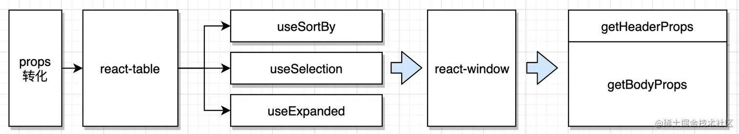 该方案中引入了github上炙手可热的开源react hook框架react-table,这是个数据逻辑hook框架,因为排序、选择、等数据逻辑是具有相似性的,所以没必要重写,它帮助节省了数据处理的成本,同时也没有干涉UI及虚拟化工作。