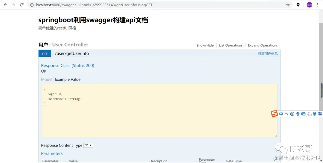 下面就开始启动项目,访问http://localhost:8080/swagger-ui.html 就可以看到我们的swagger页面