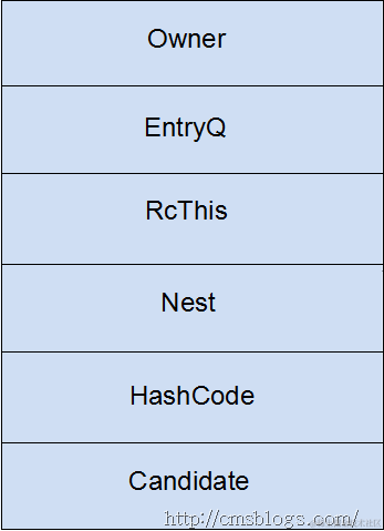 - EntryQ:关联一个系统互斥锁(semaphore),阻塞所有试图锁住monitor record失败的线程。